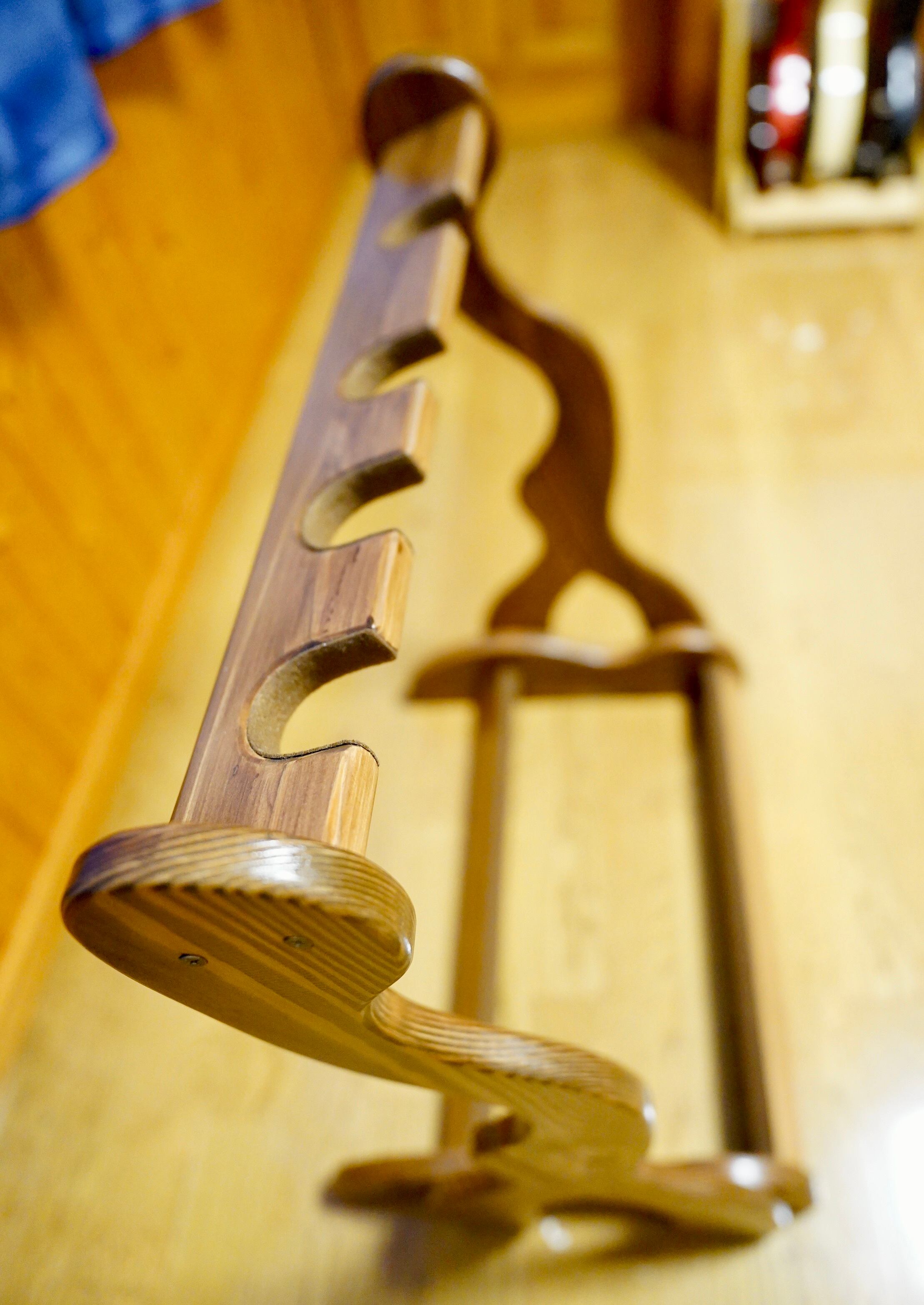 こちらは無垢材を使用したハンドメイドのギターラックです。