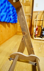 ギターを支える二本の横木は角度をつけてハの字にしてあり、