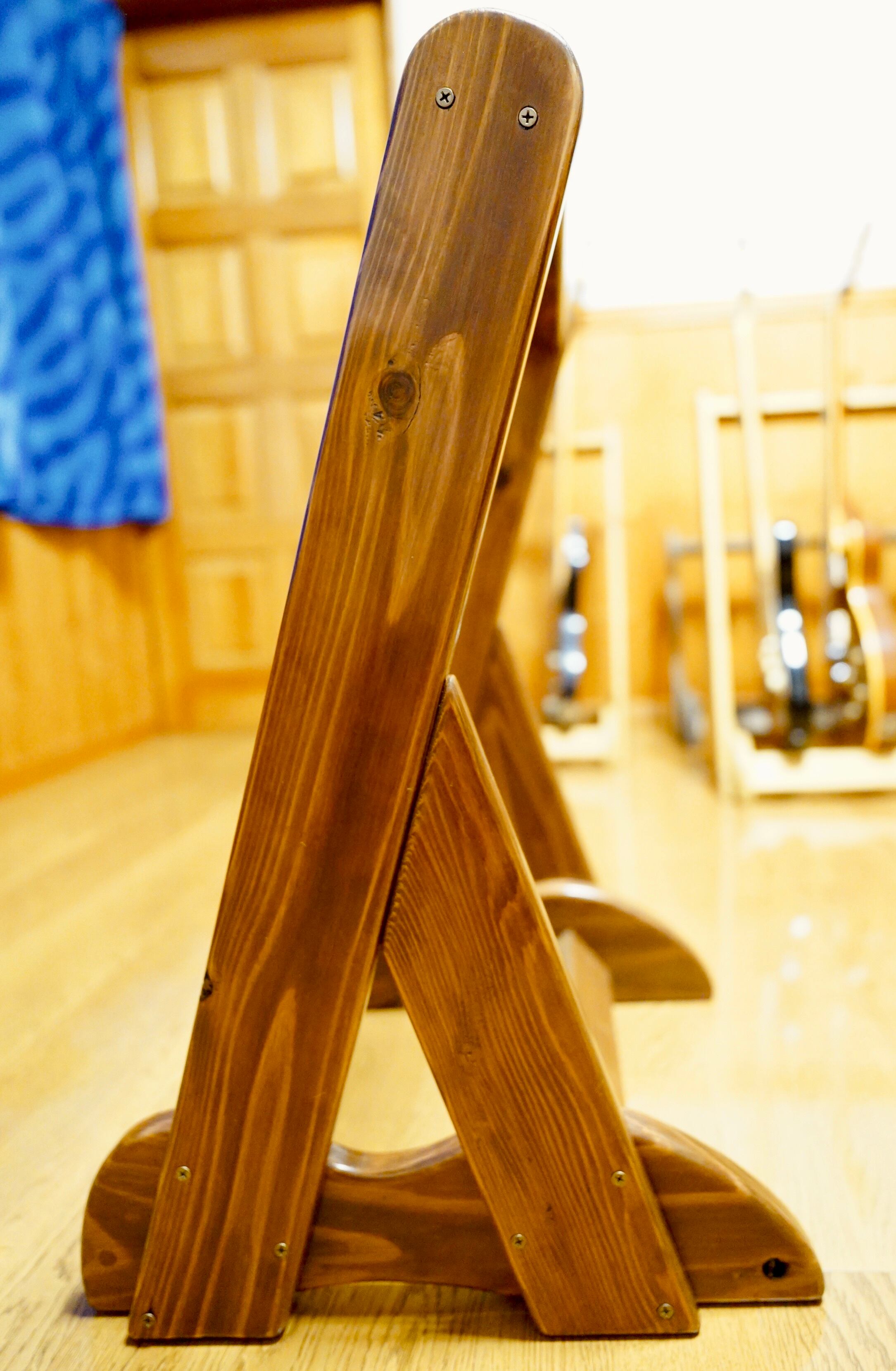 ギターを支える二本の横木は角度をつけてハの字にしてあり、