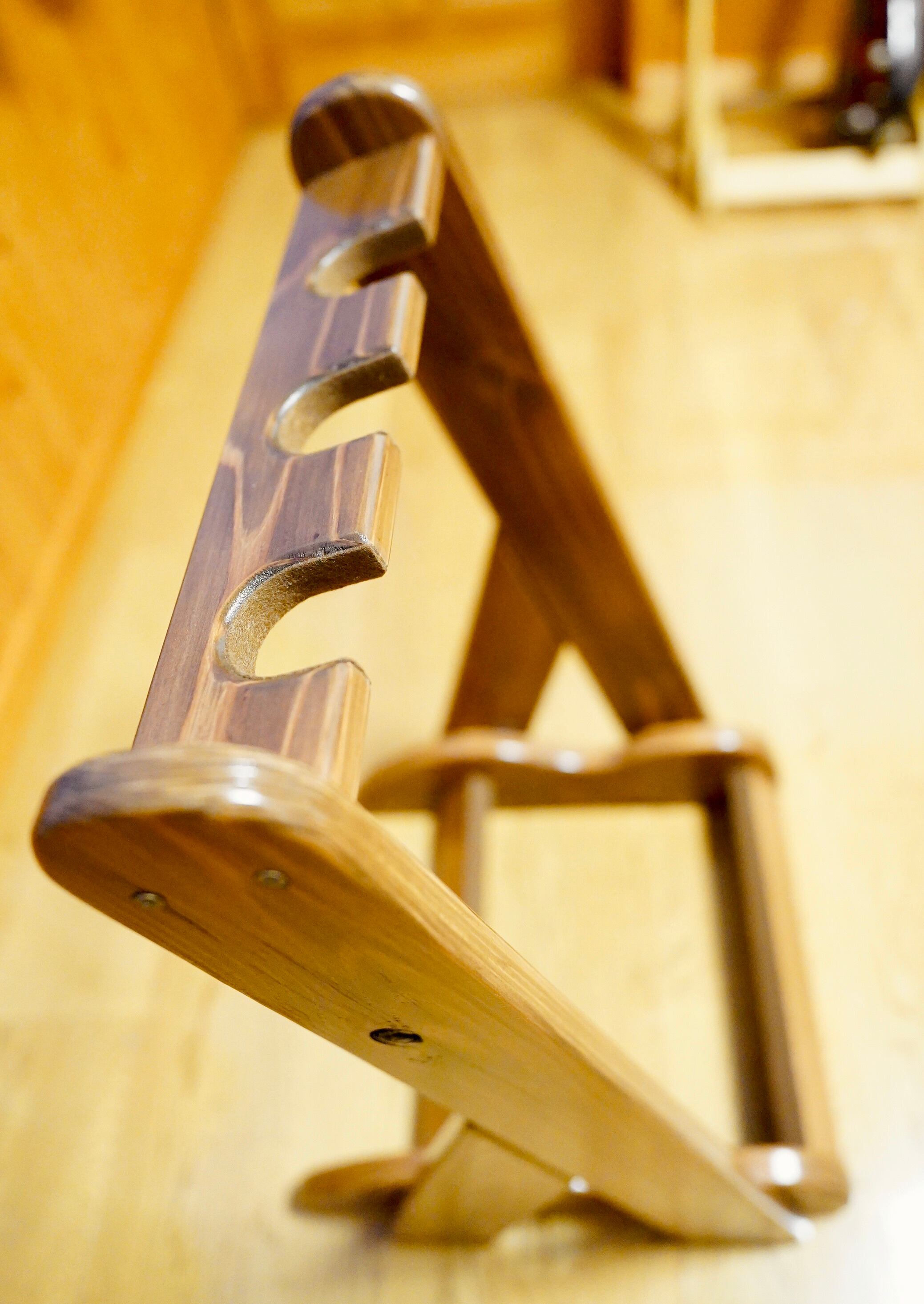 【24時間以内に発送】手作り木工 木製ギタースタンド (ニス仕上げ) 3本掛け