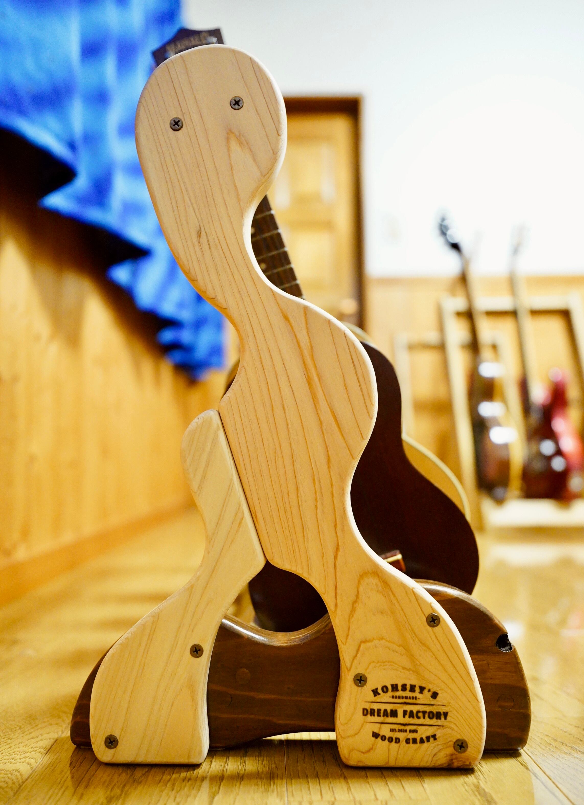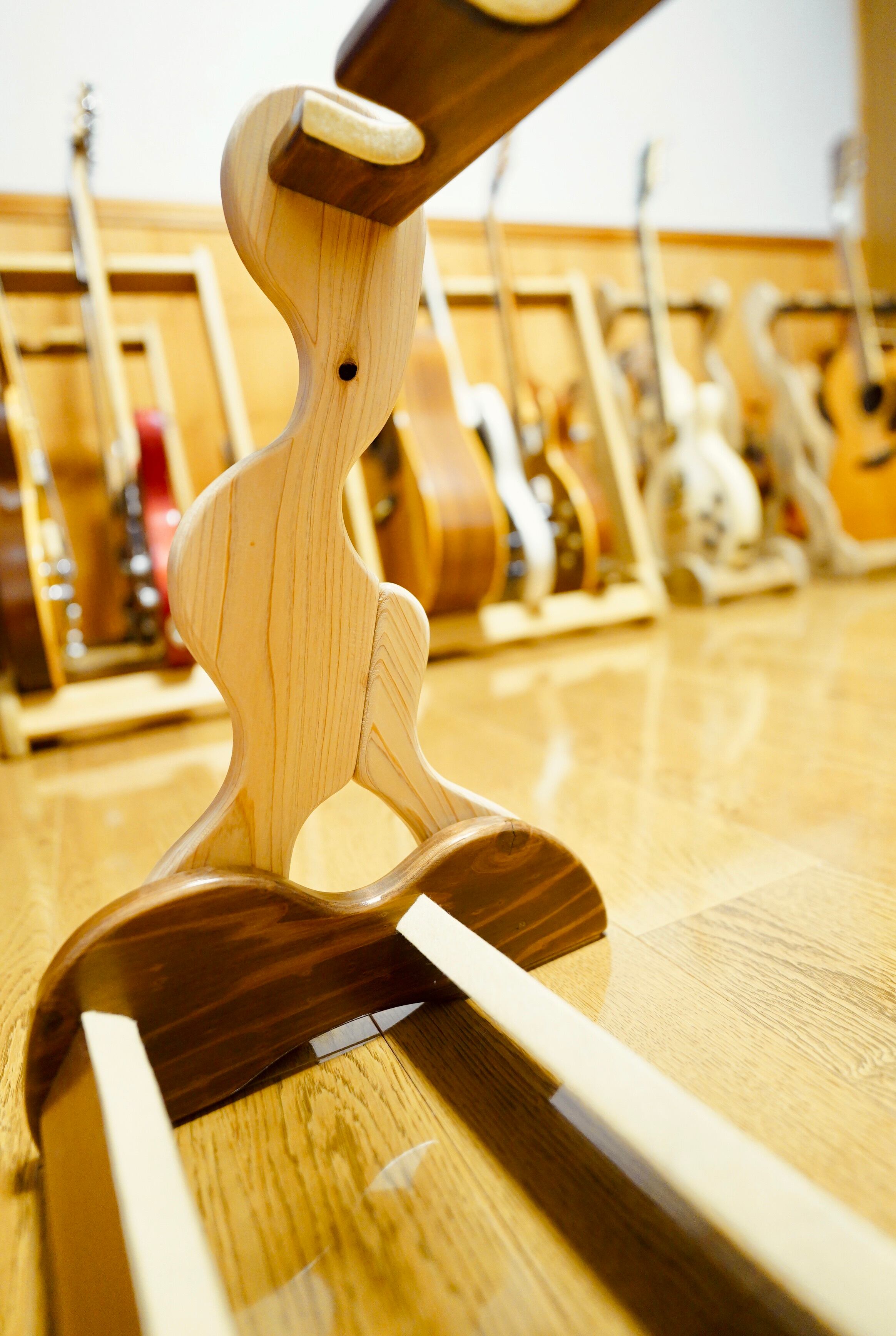 こちらは無垢材を使用したハンドメイドの木製ウクレレラックです。