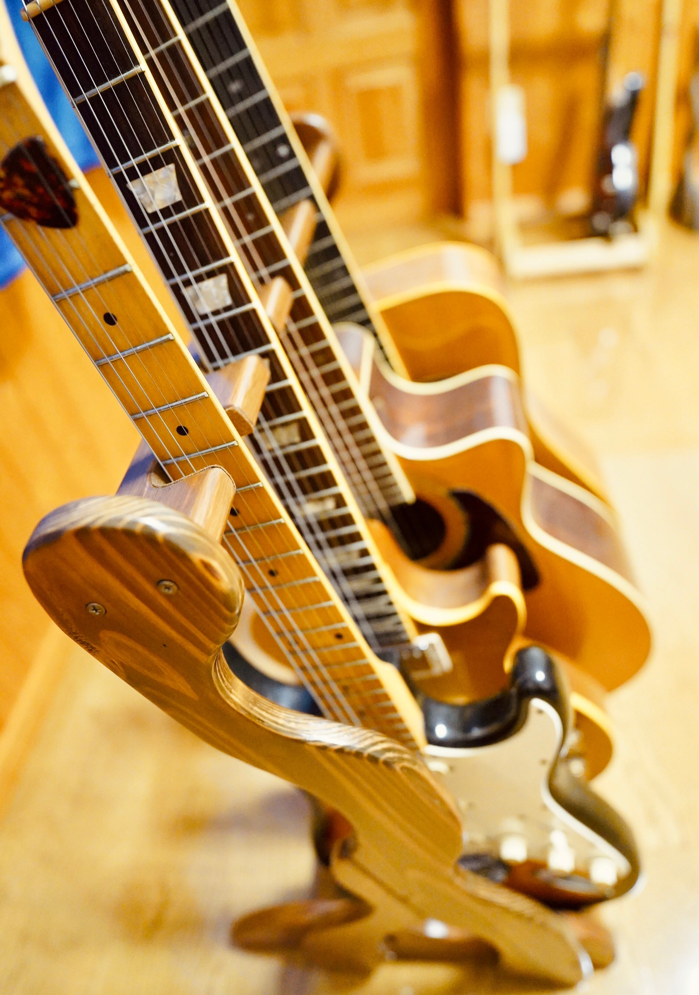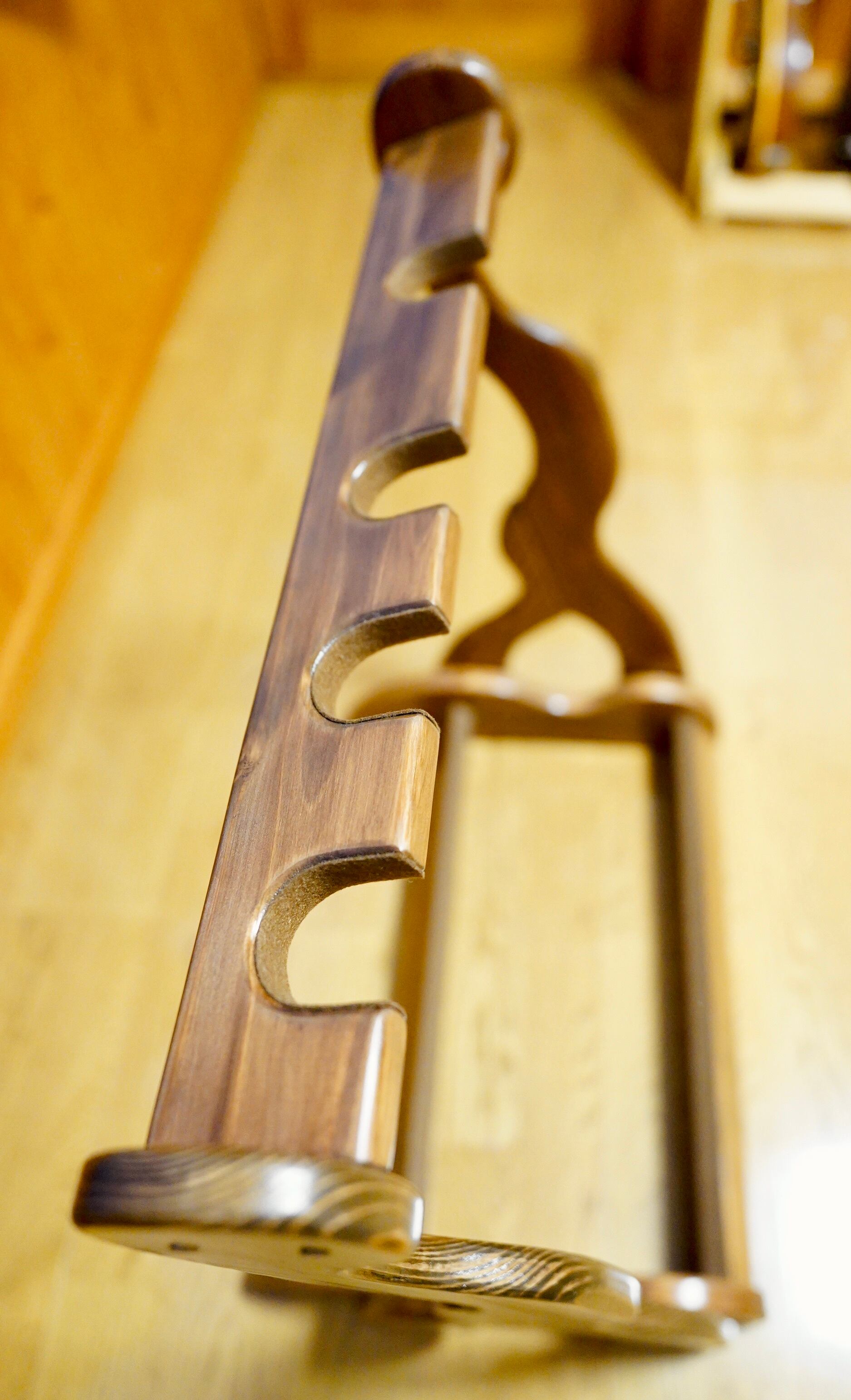 【オーダー品】手作り木工 木製ギタースタンド (ニス仕上げ) 4本掛け