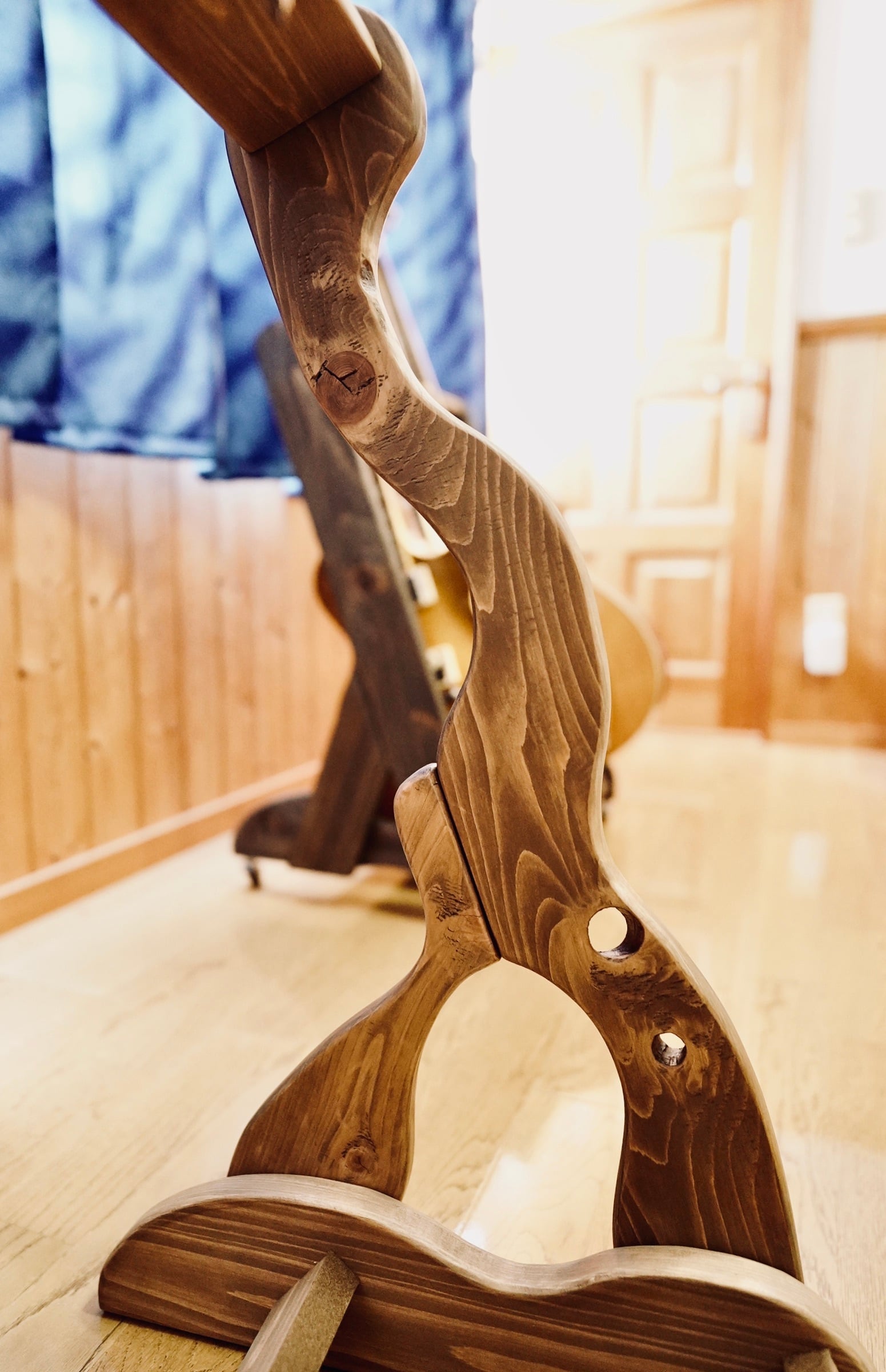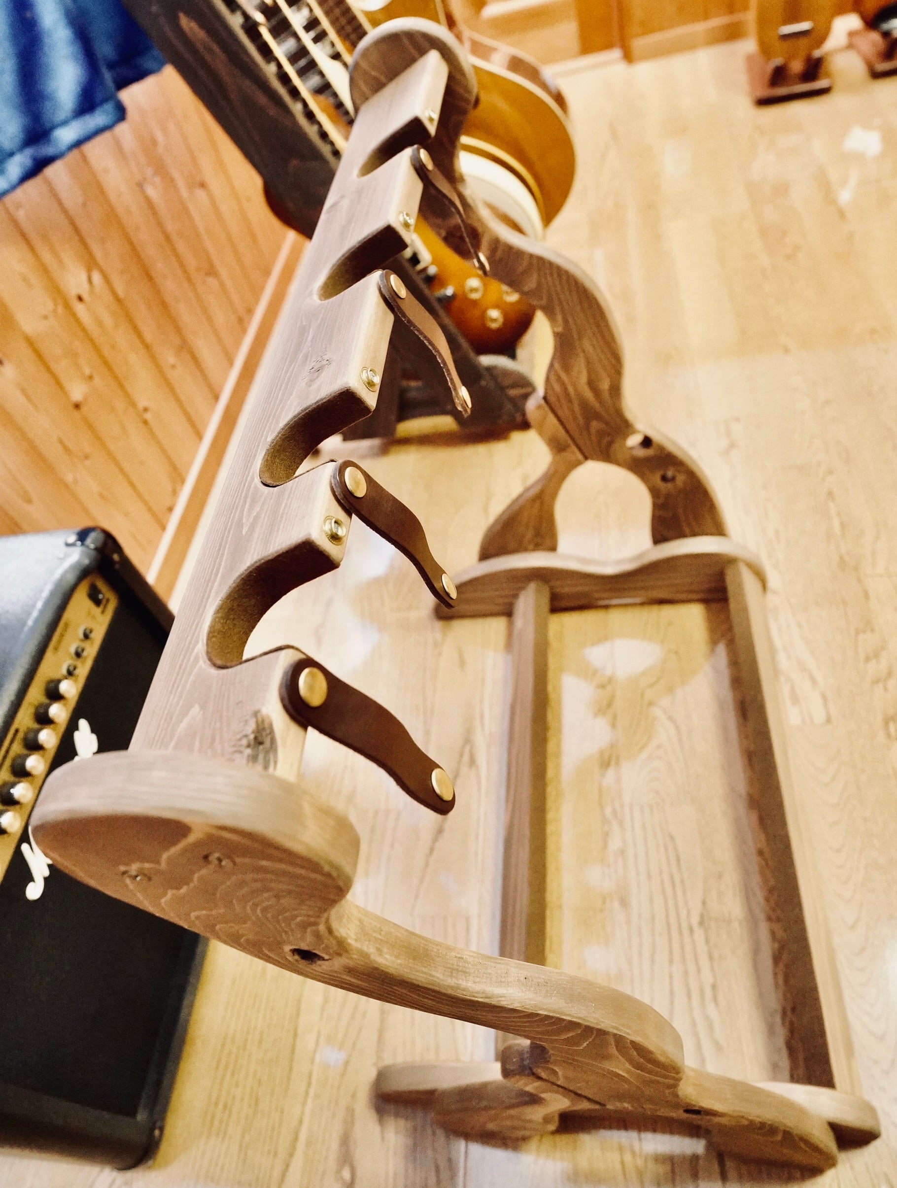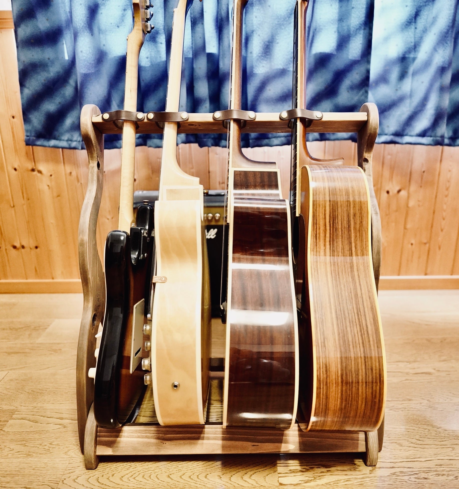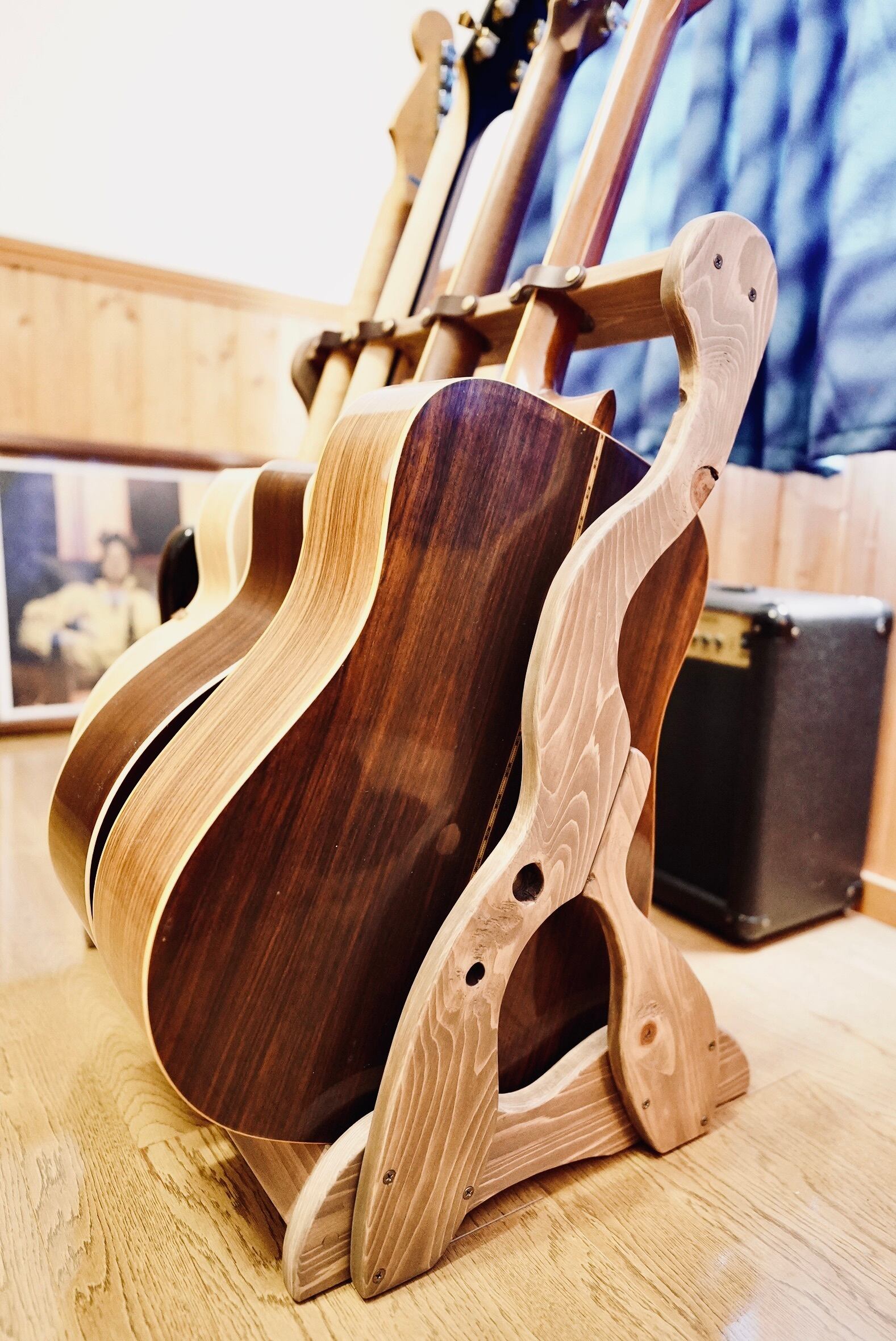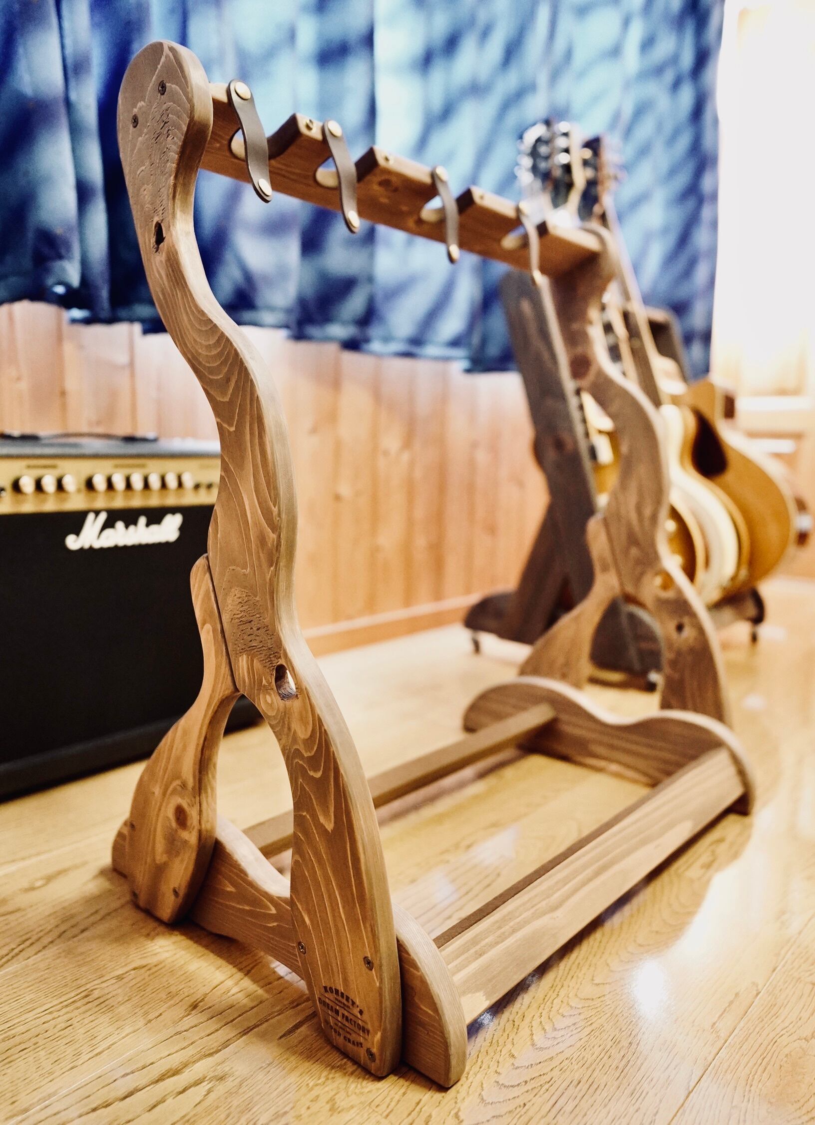 無垢材を使用したハンドメイドのギターラックです。