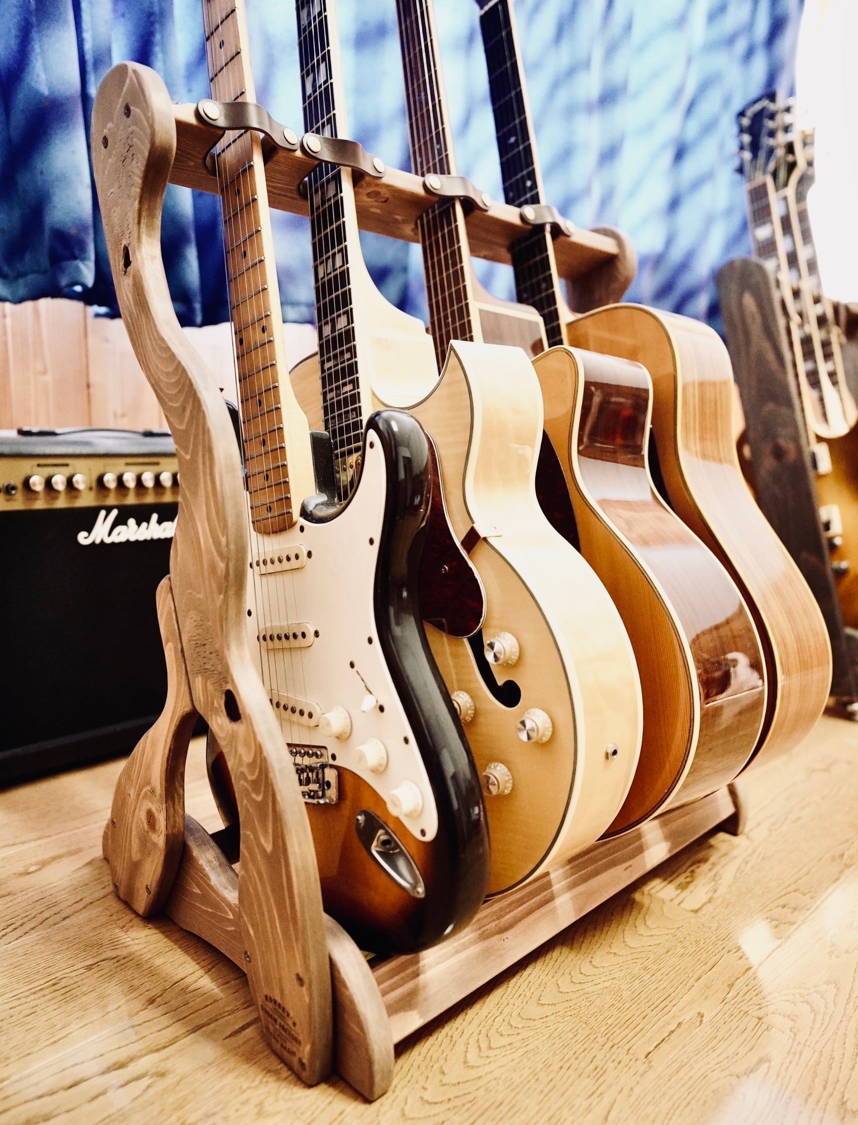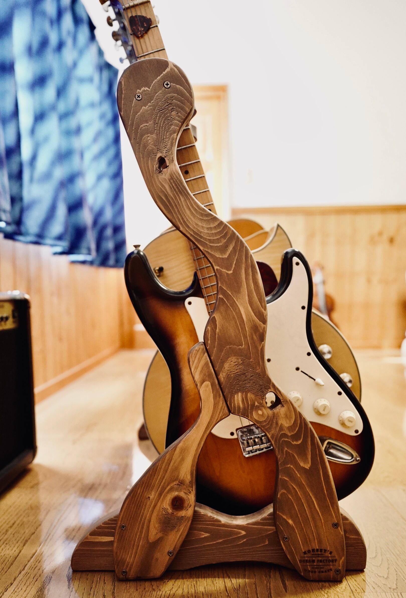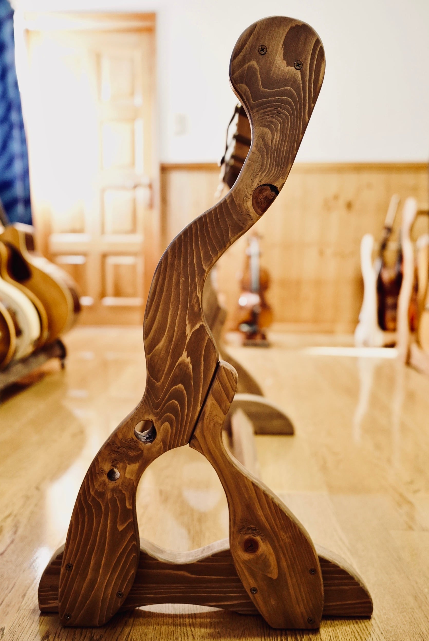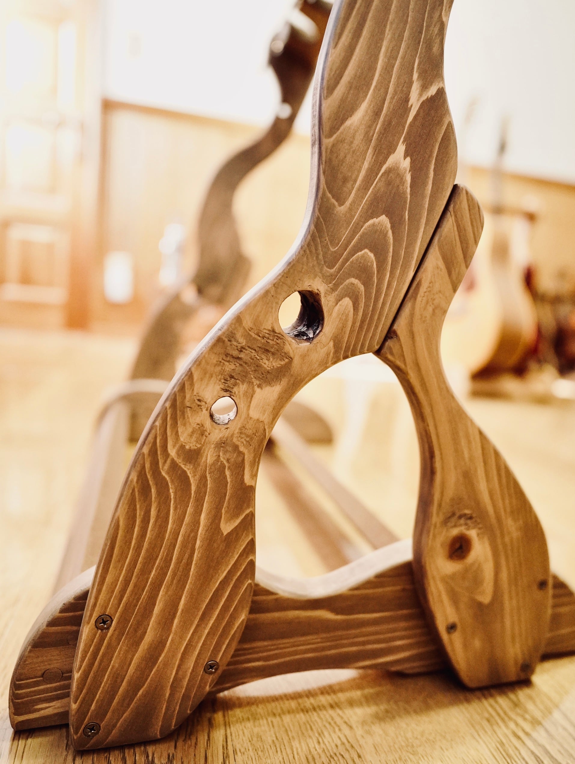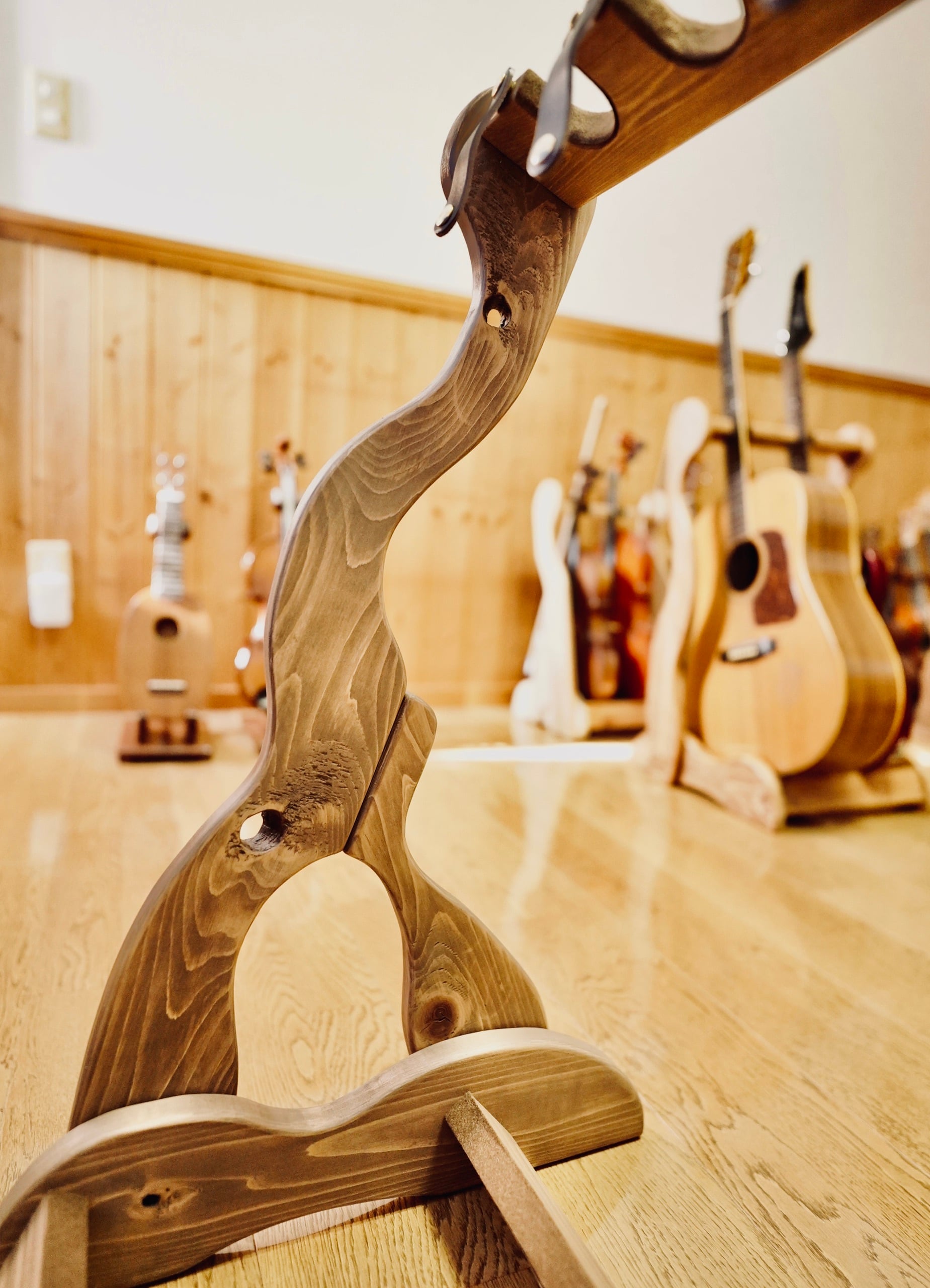 無垢材を使用したハンドメイドのギターラックです。