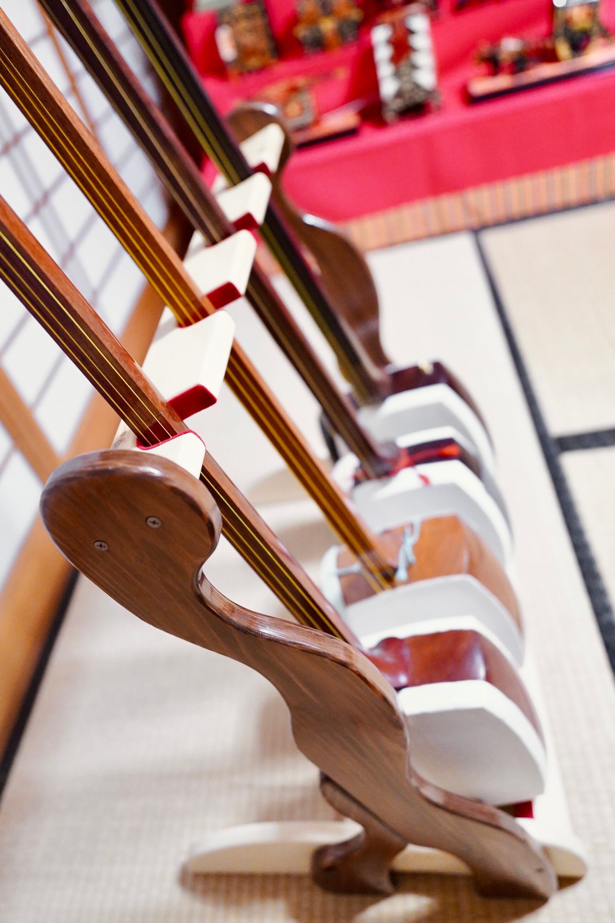 三味線を立てかける時は優しく立てかけてください。