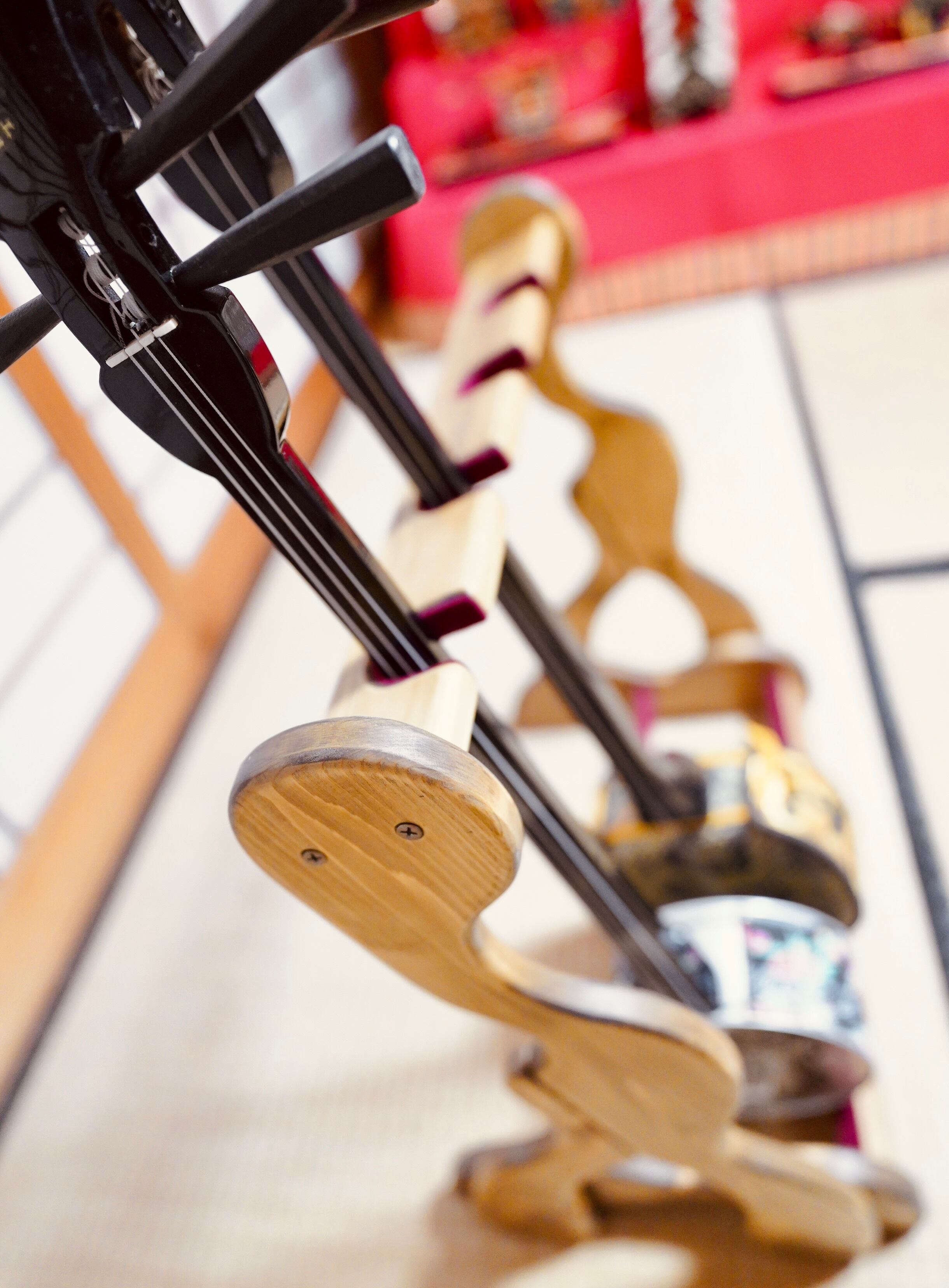 ※こちらのスタンドには三味線(細棹〜太棹)を掛けることはできません。