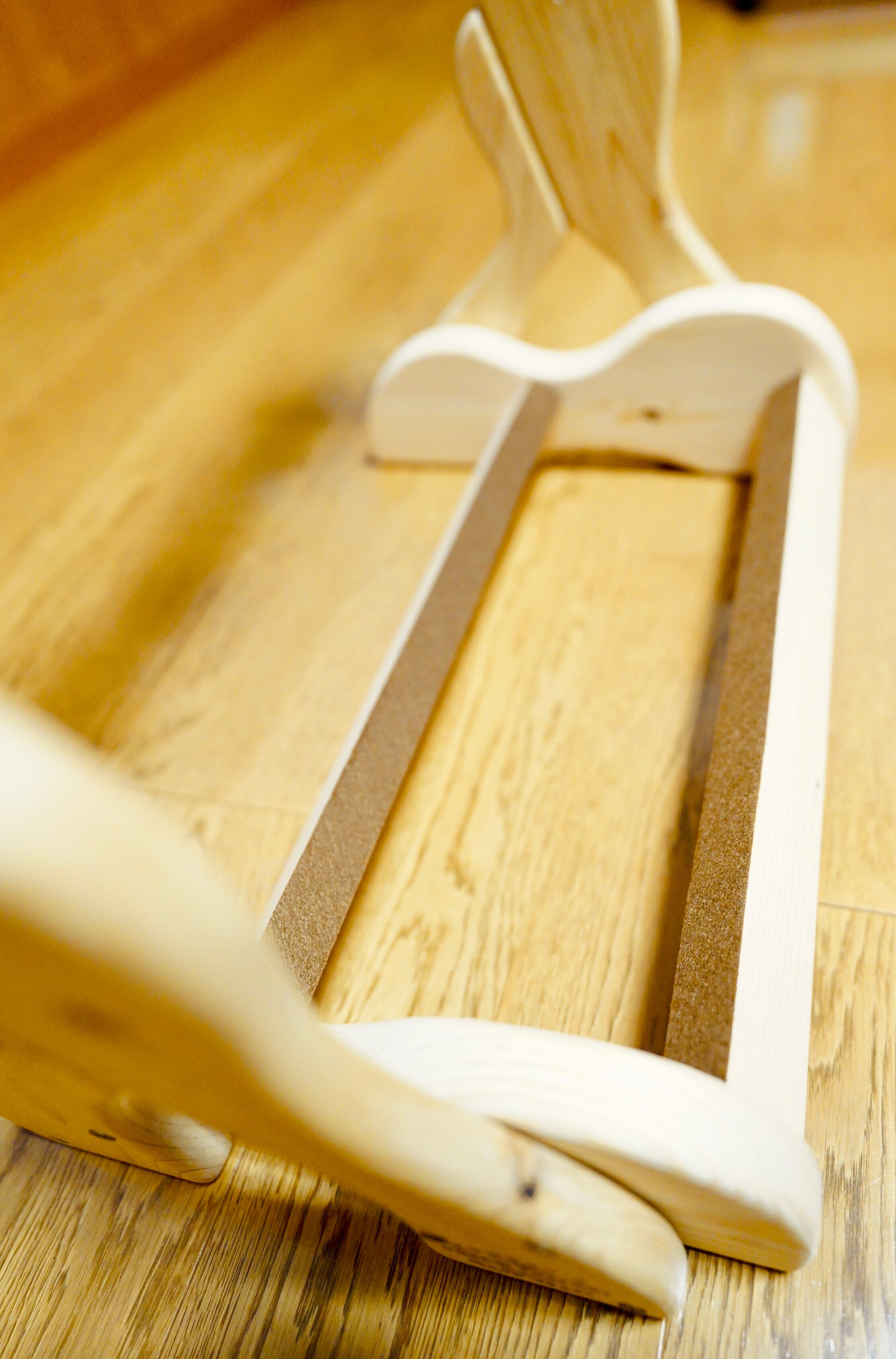 ボディを支える二本の横木は角度をつけてハの字にしてあり、しっかりとキャッチできるように設計されています。