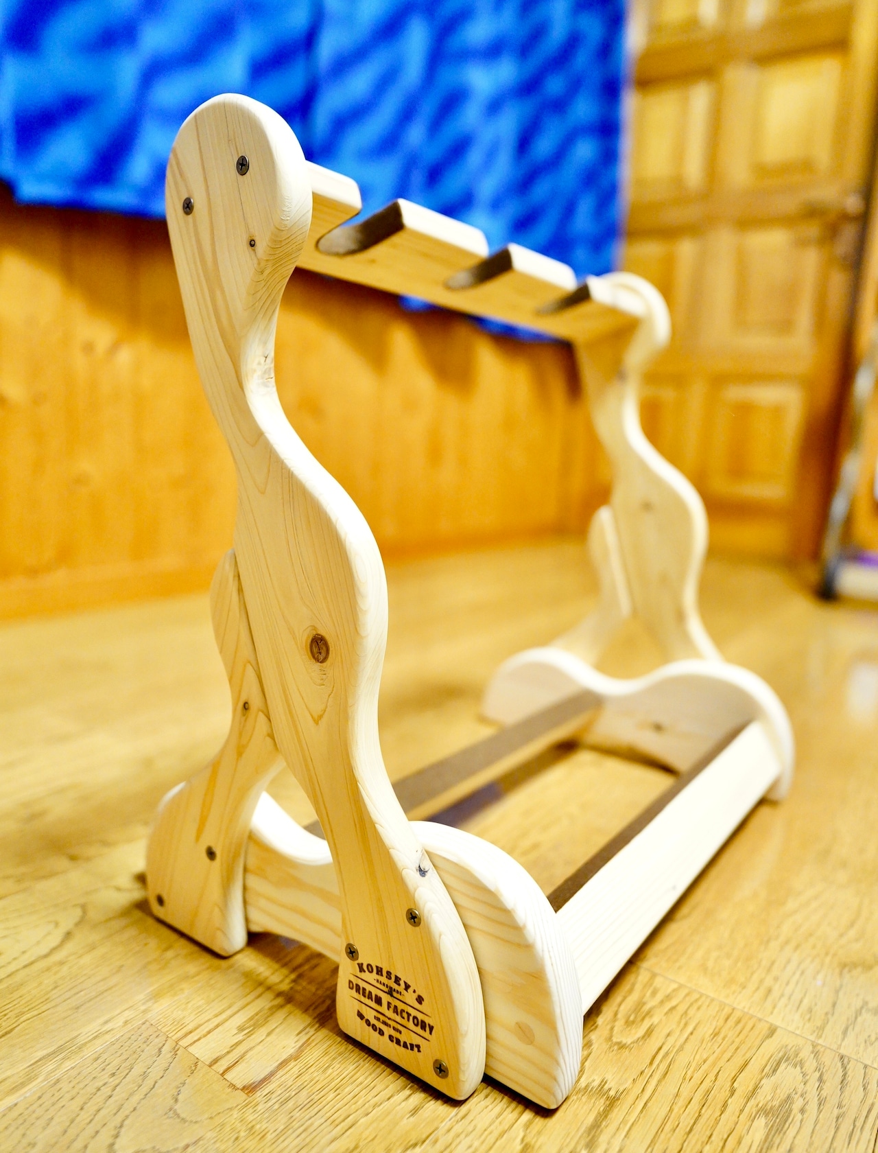 【オーダー品】手作り木工 木製ウクレレスタンド(ステイン仕上げ) 3本掛け
