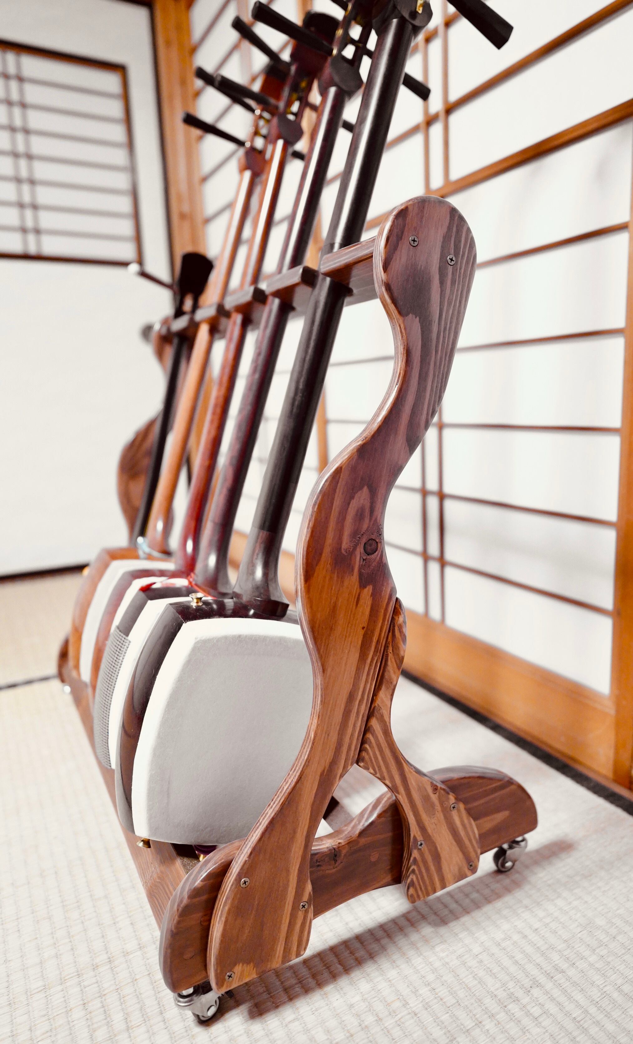 【オーダー品】手作り木工 木製三味線スタンド (ニス仕上げ) キャスター付き