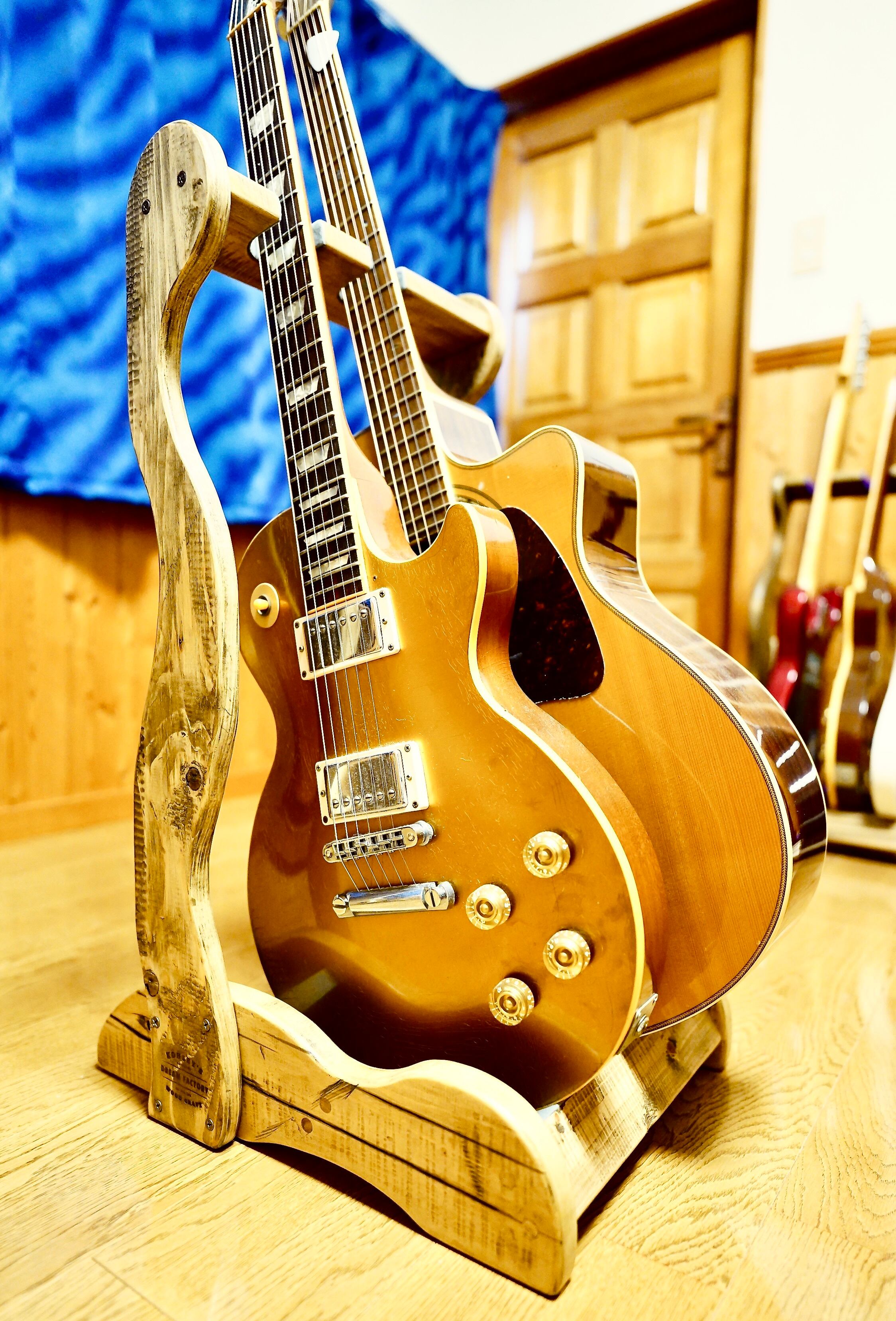 【24時間以内に発送】手作り木工 木製ギタースタンド (古材)2本掛け