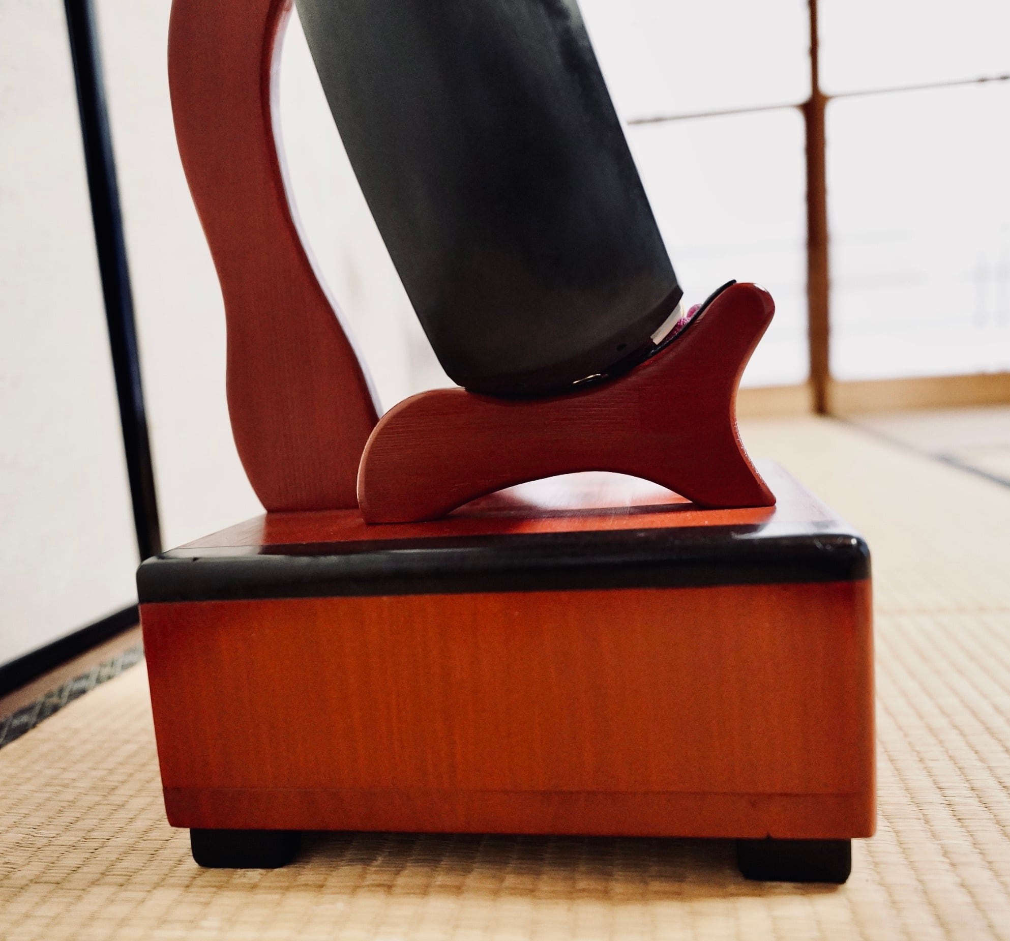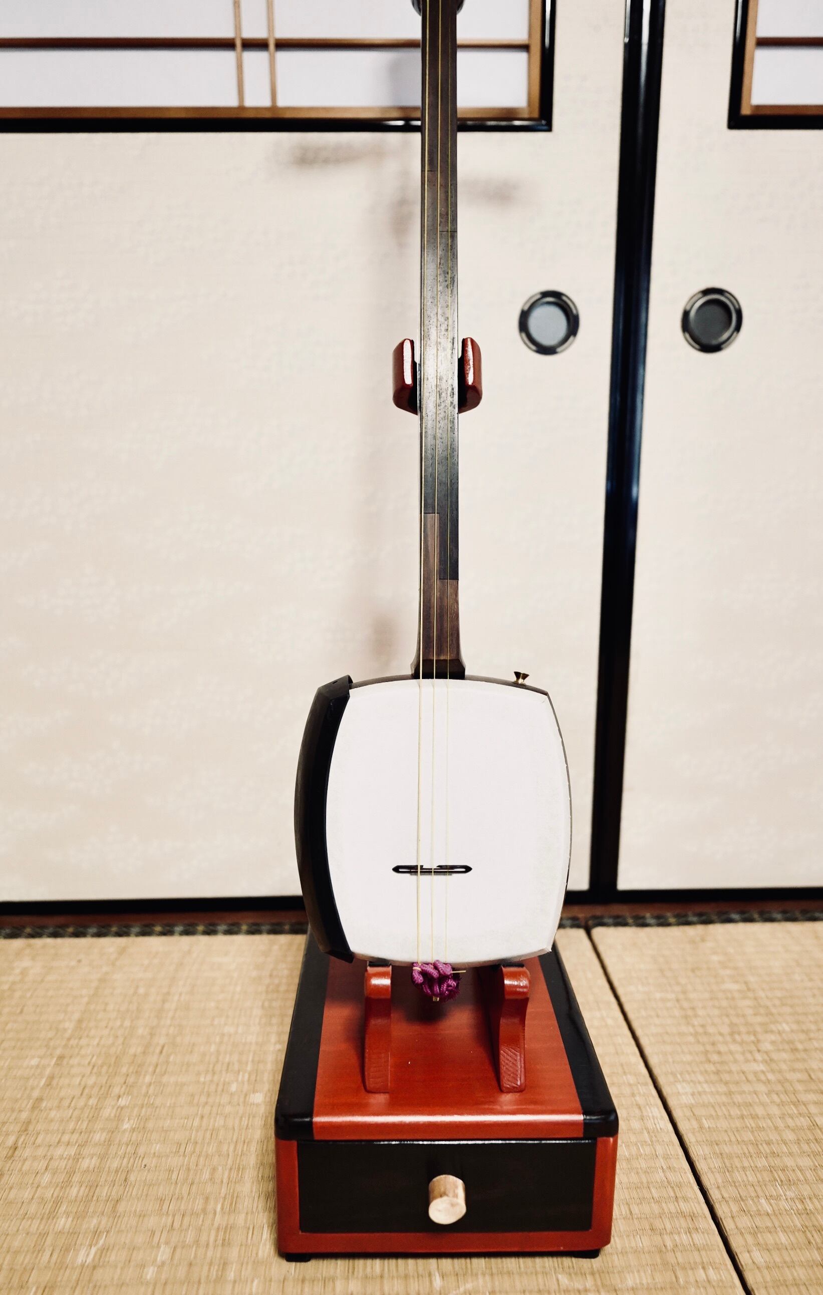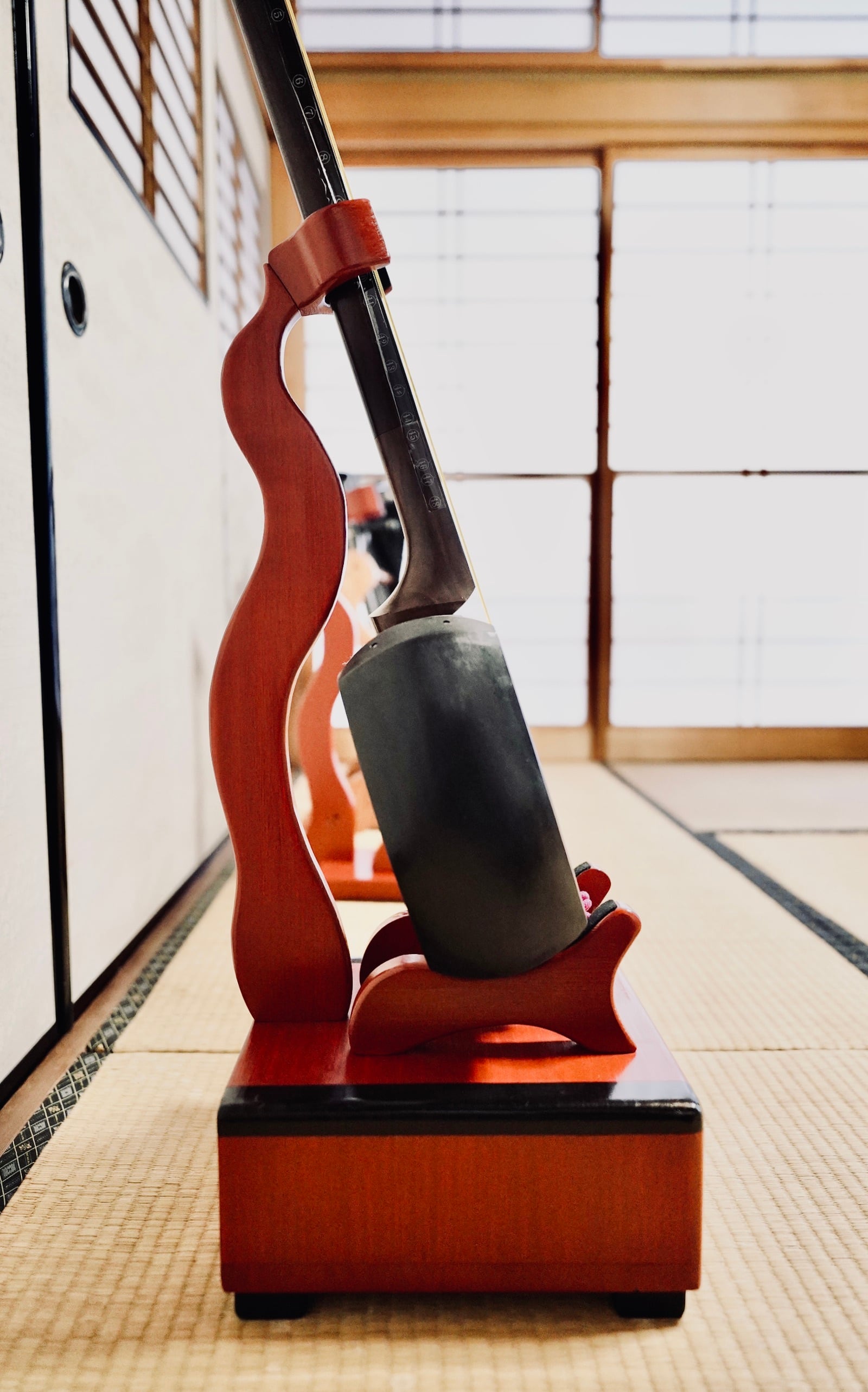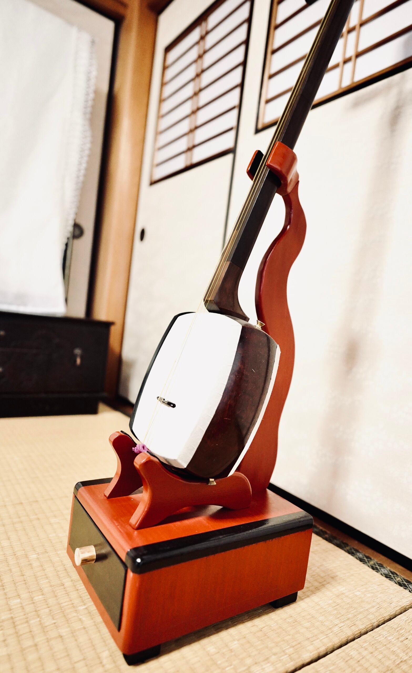 【再販不可】手作り木工 木製三味線スタンド (漆仕上げ) 1本掛け 引き出し付き