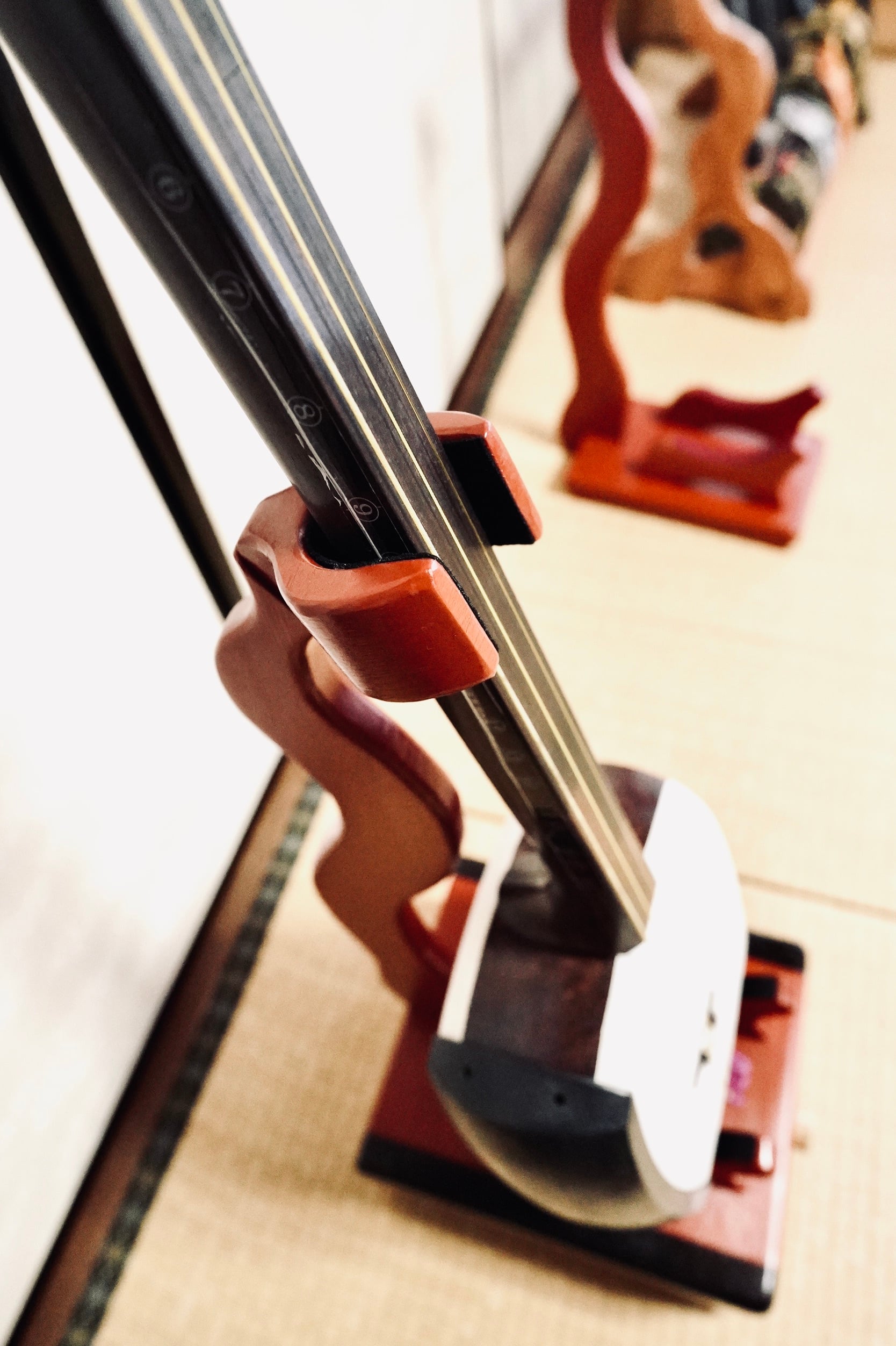 こちらは集成材を使用したハンドメイドの三味線ラックです。