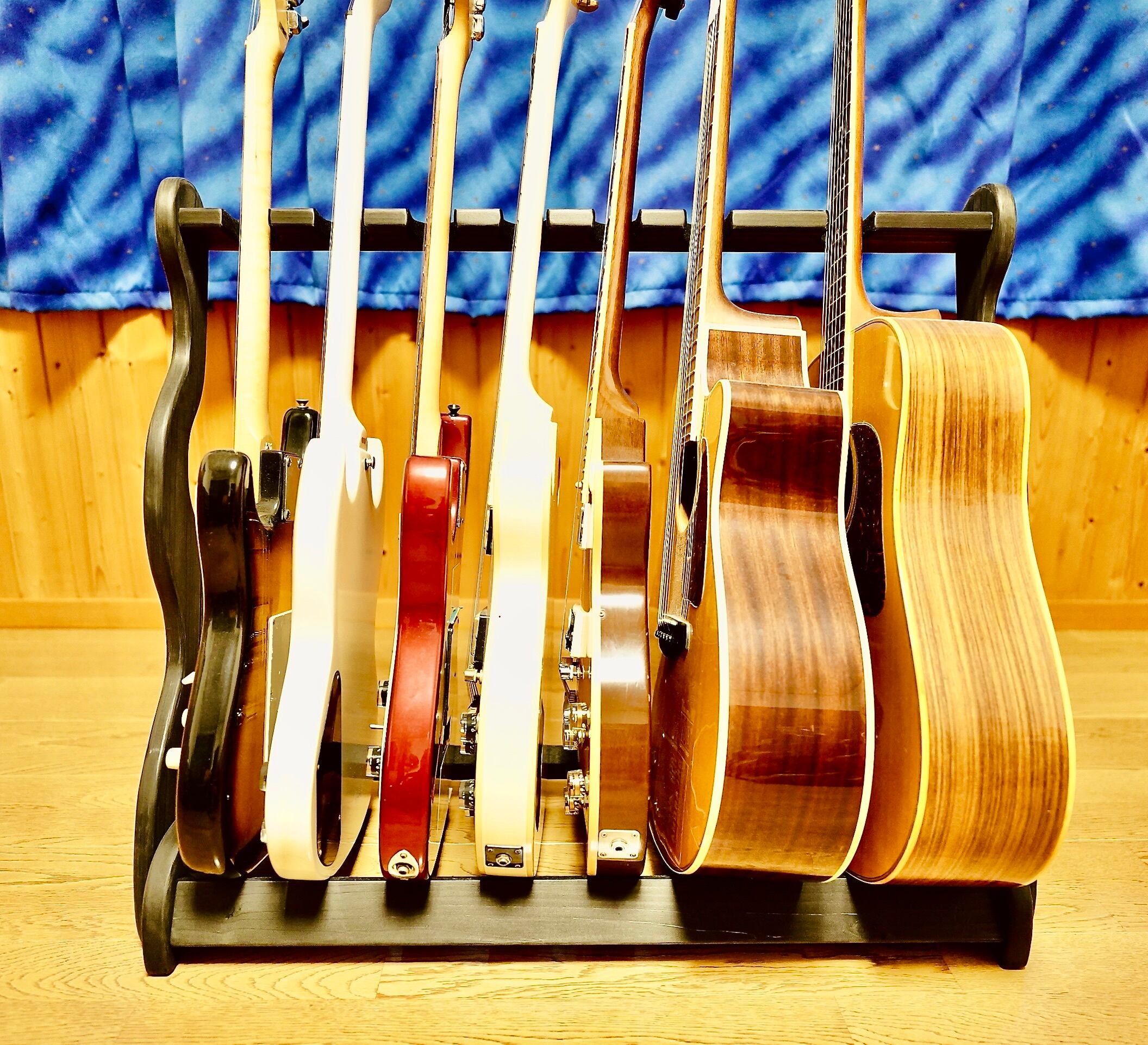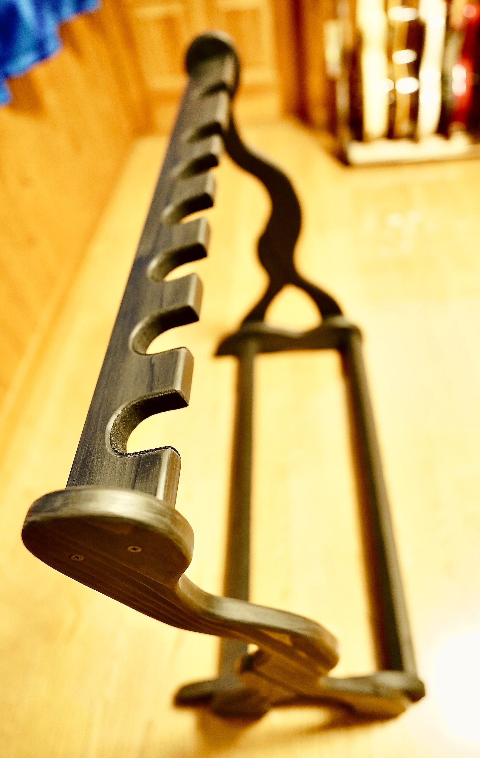 【24時間以内に発送】手作り木工 木製ギタースタンド (ステイン仕上げ) 7本掛け