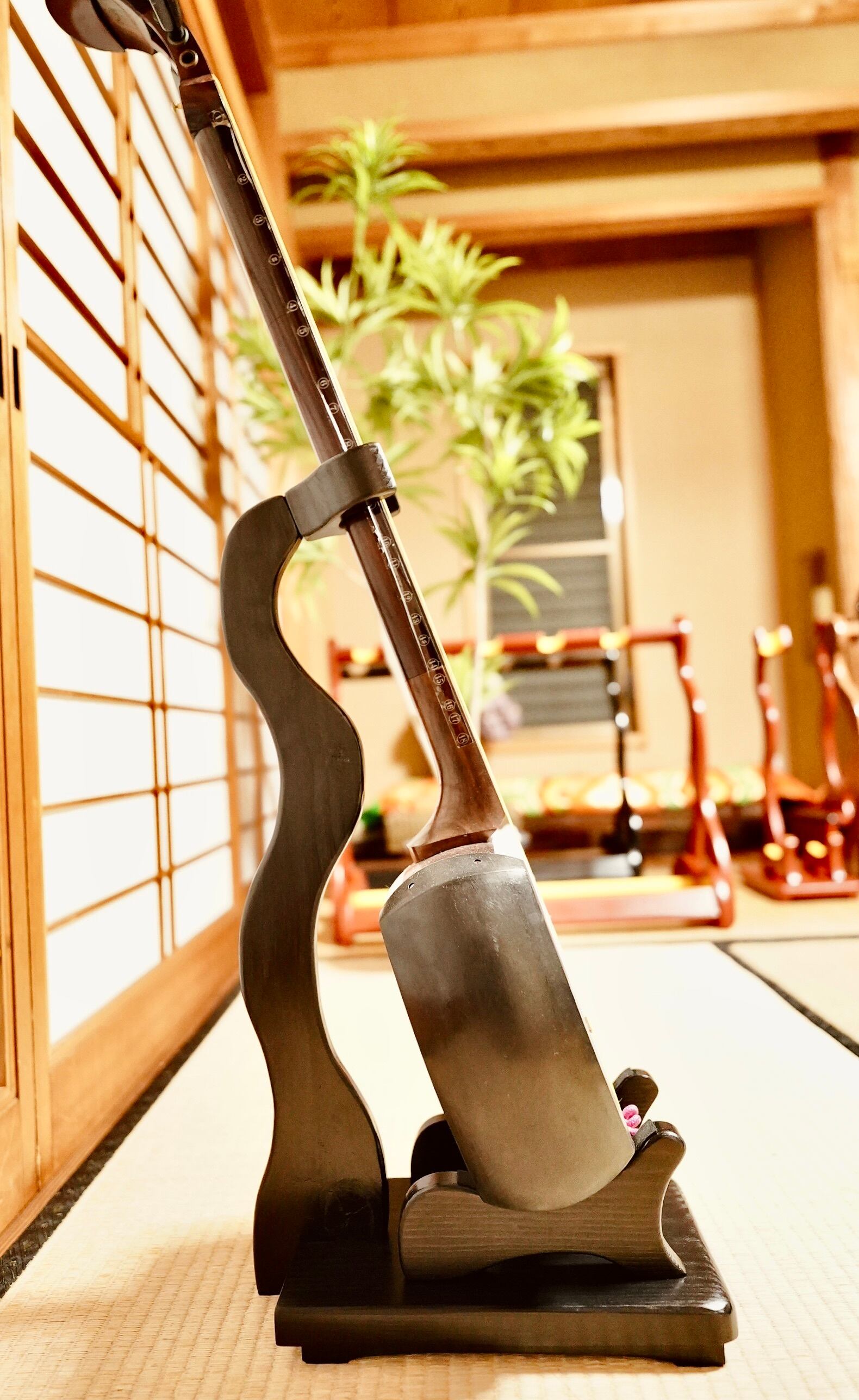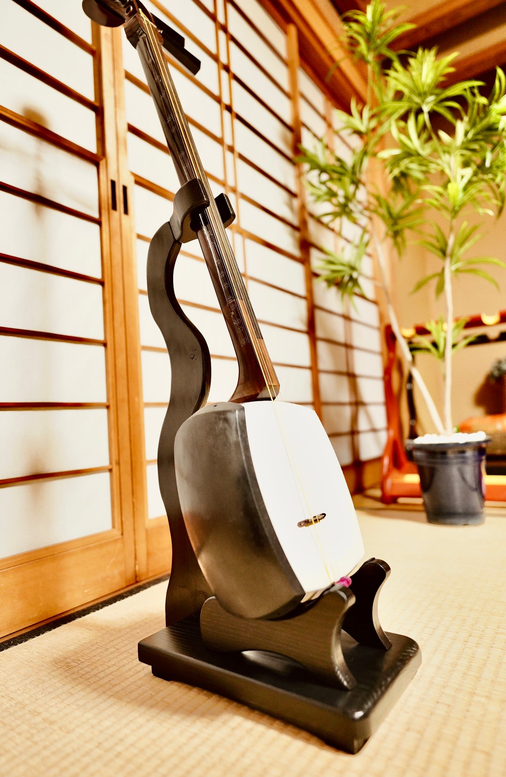 【オーダー品】手作り木工 木製三味線スタンド (黒漆) タイプA