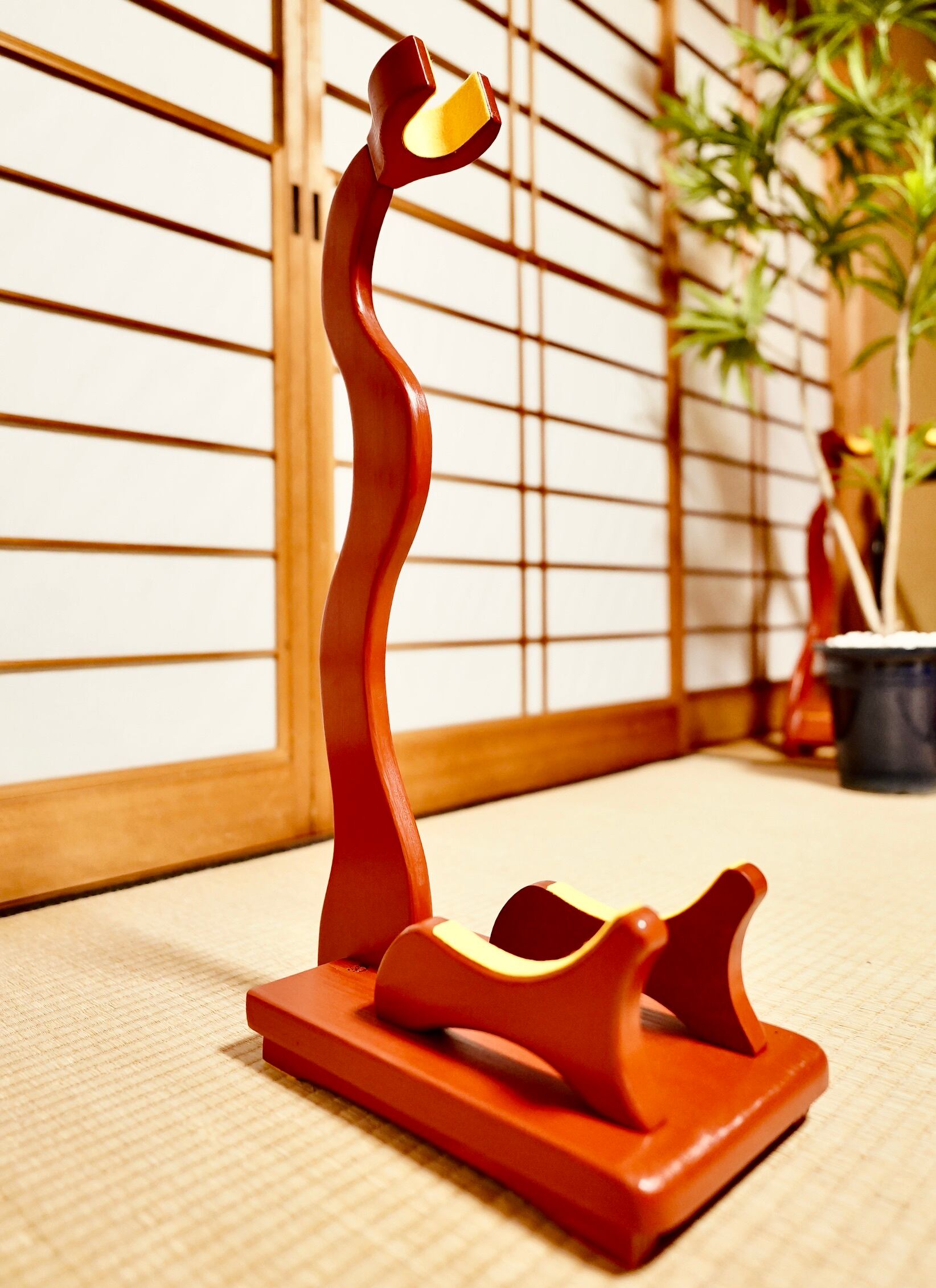 【24時間以内に発送】手作り木工 木製三味線スタンド (赤漆) タイプA