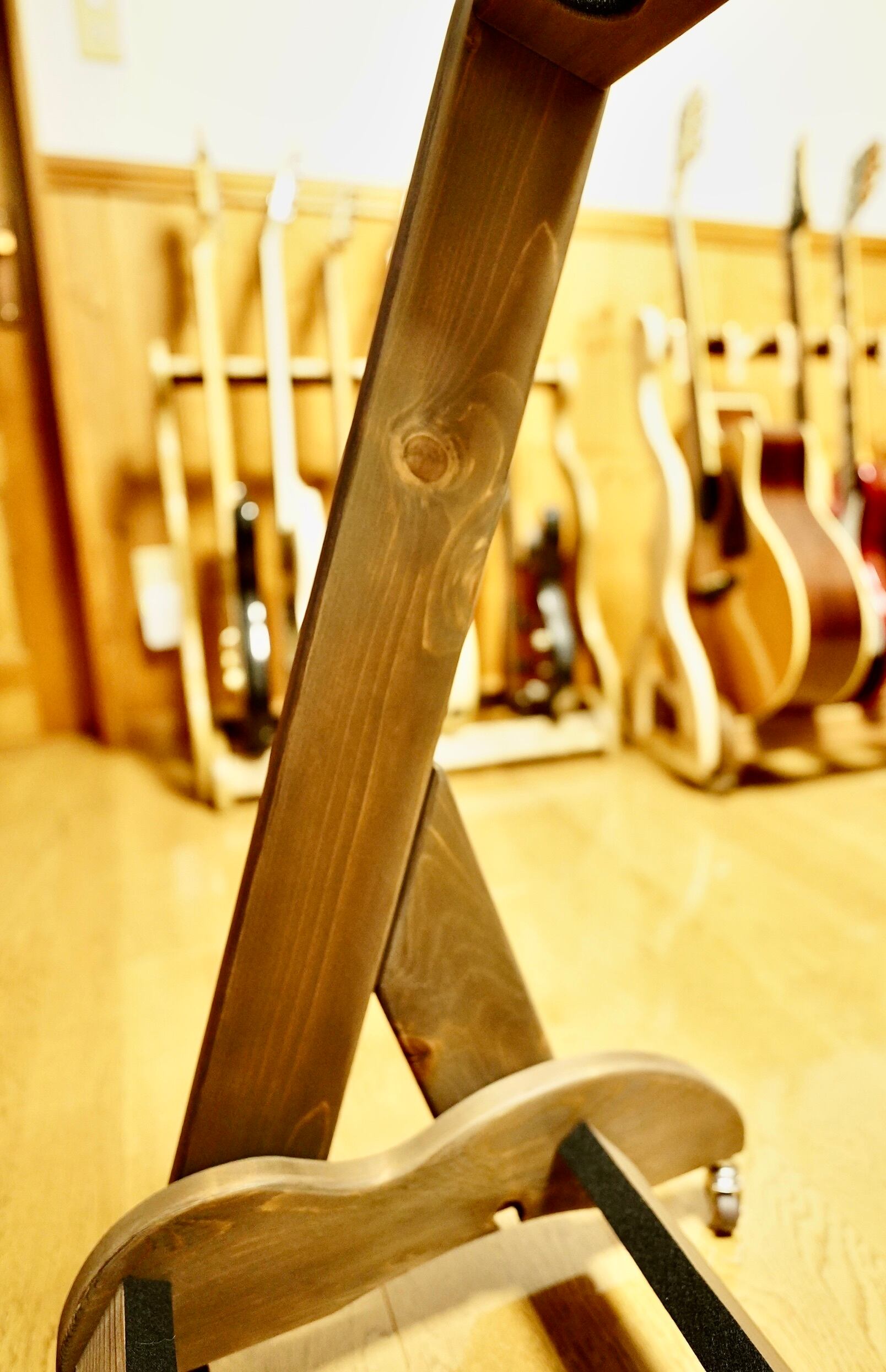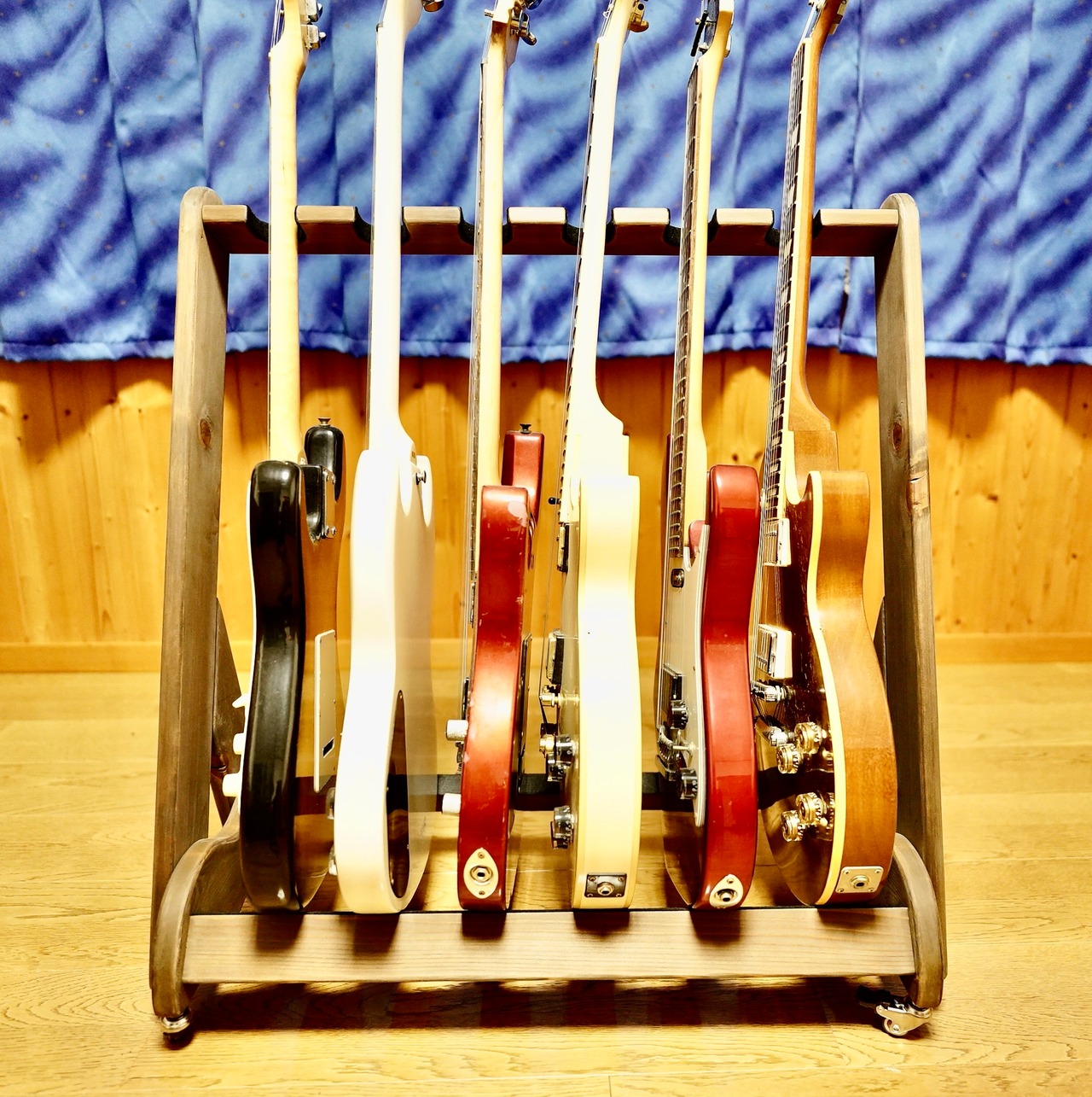 【24時間以内に発送】手作り木工 木製ギタースタンド (ステイン仕上げ) 6本掛け キャスター付き